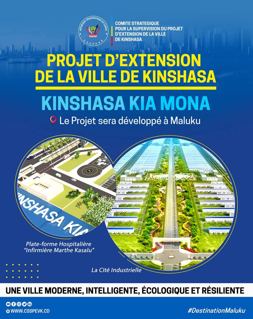 La République Démocratique du Congo annonce la tenue de la cérémonie solennelle de la pose des premières pierres de la Cité Industrielle et de la Plate-forme hospitalière “Infirmière Marthe Kasalu”, prévue pour ce lundi 15 décembre 2025 à Maluku.